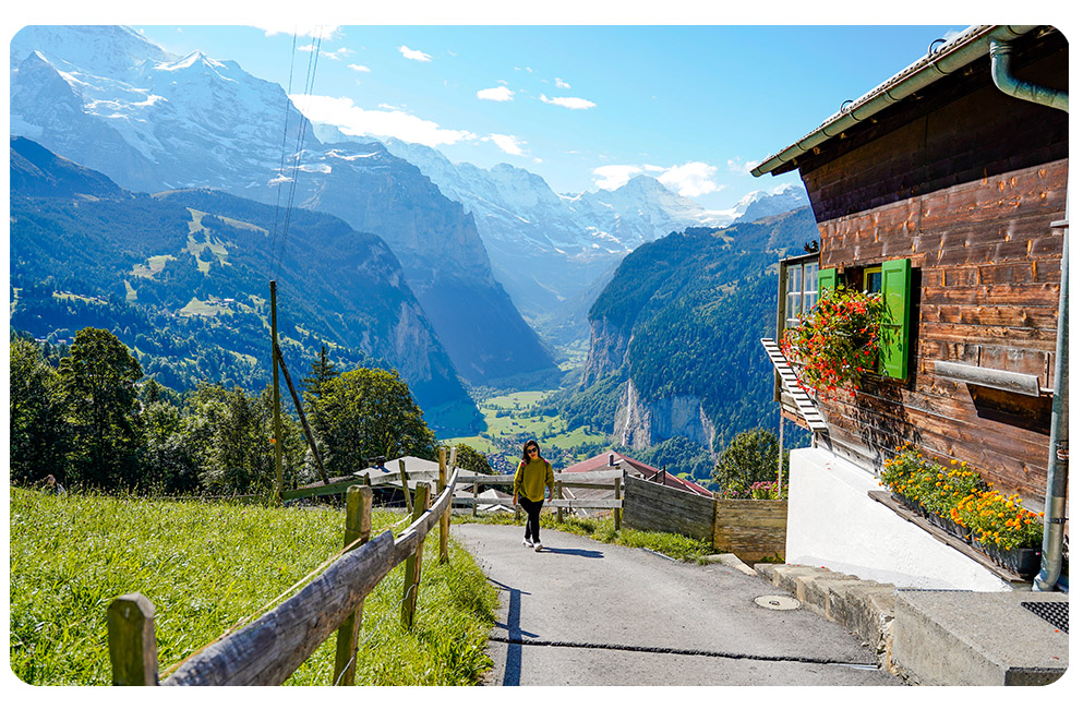 Hari ini kita akan menikmati pengalaman khas Swiss dengan menjelajahi jalur spektakuler dari Lauterbrunnen ke Wengen. Untuk menuju ke Wengen, kita akan menaiki kereta panorama terindah di desa ini sekitar 12 menit hingga ke ketinggian 1,274 mdpl dengan pemandangan dongeng mulai dari lembah hijau yang luas, tebing batu vertikal yang megah, dan air terjun yang mengalir deras dari ketinggian. Setelah itu, aktivitas khas Peponi dimulai dengan hiking sejauh 5 km yang menawarkan pemandangan yang menakjubkan dari Desa Wengen yang bebas kendaraan dan penuh suasana tenang. Selama hiking, kamu bisa menikmati panorama Pegunungan Alpen berpadu dengan pedesaan dan peternakan. Kemudian, kita akan turun kembali ke Lauterbrunnen dengan kereta ekspres panorama dengan jendela besar yang menampilkan lanskap Swiss dari sudut terbaiknya. Sore harinya, kita akan berjalan menyusuri valley walking trail sejauh 3 km, melewati padang rumput hijau dan beberapa dari 72 air terjun ikonik yang ada di lembah ini. Setelah hari yang penuh petualangan, kita akan beristirahat di desa Lauterbrunnen, menikmati suasana malam yang damai di tengah lembah pegunungan.